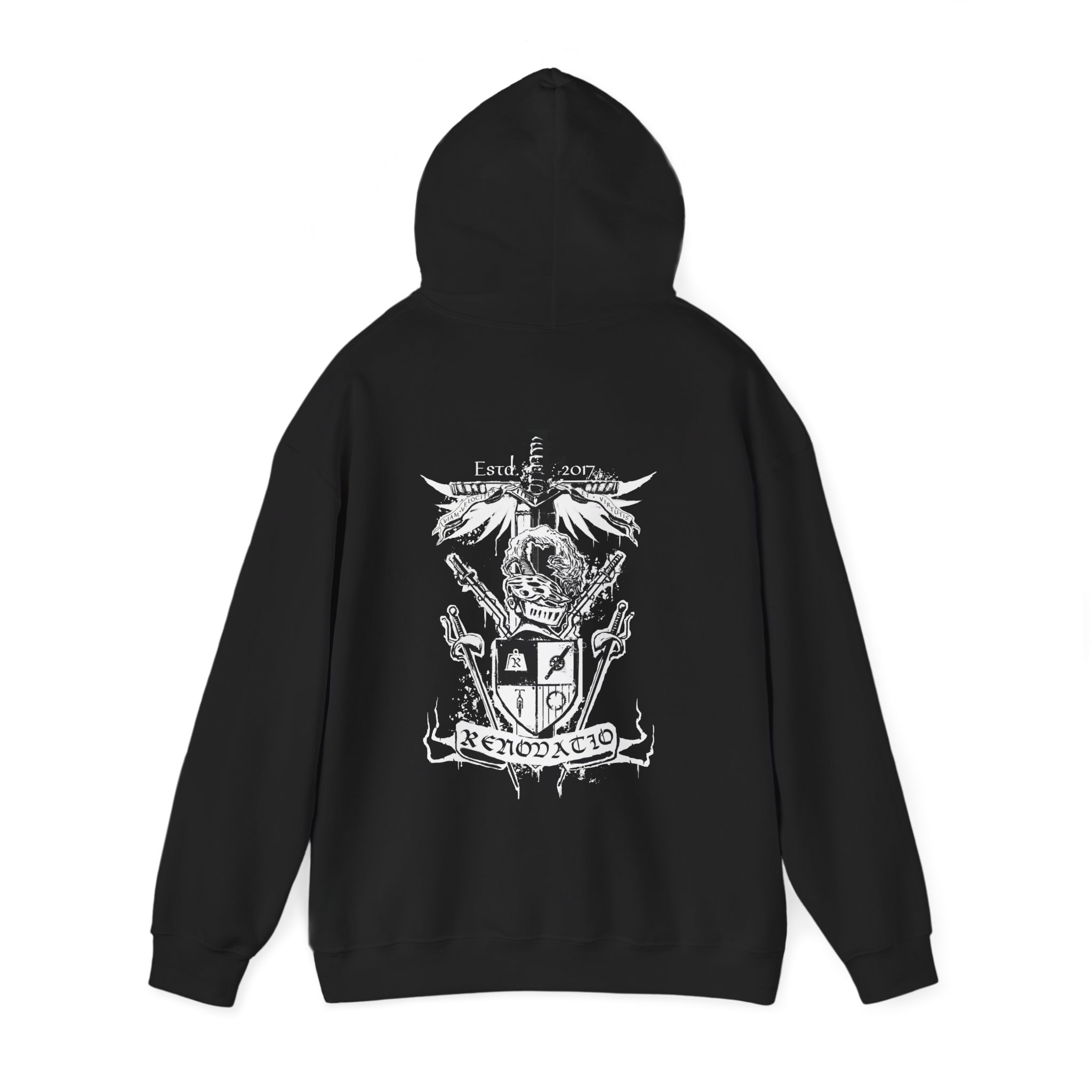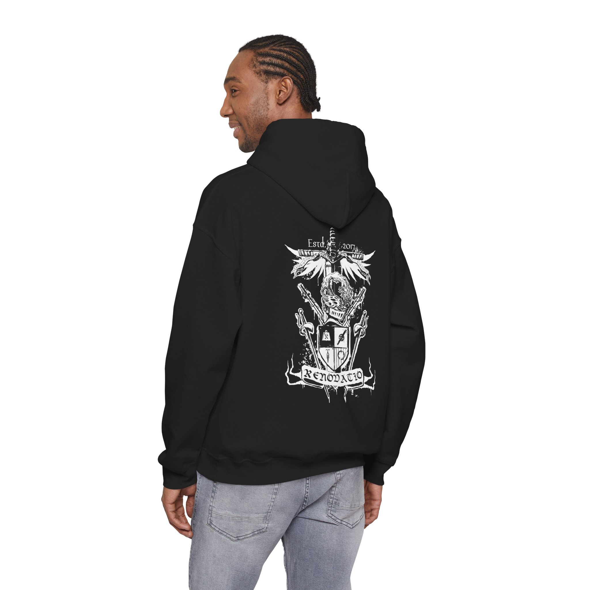 Soyez le premier à laisser votre avis sur “Graphic Hoodie — Gothic Crest Skull Emblem Back Print”