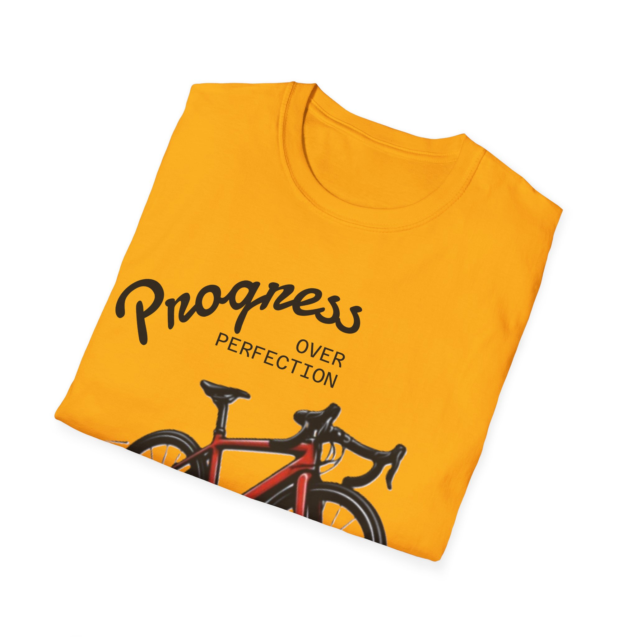 This lightweight cotton tee carries a quiet energy — the hum of paved roads and the thrill of a clean rebuild. A vivid road-bike graphic and the words “Progress Over Perfection” sit across the chest, nodding to hands-on riders and workshop tinkerers who value steady gains over instant glory. Wear it to the shop, out on a cooldown ride, or while sorting parts at the workbench. It breathes easily, layers without bulk, and keeps the focus on what matters: the ride and the craft behind it.