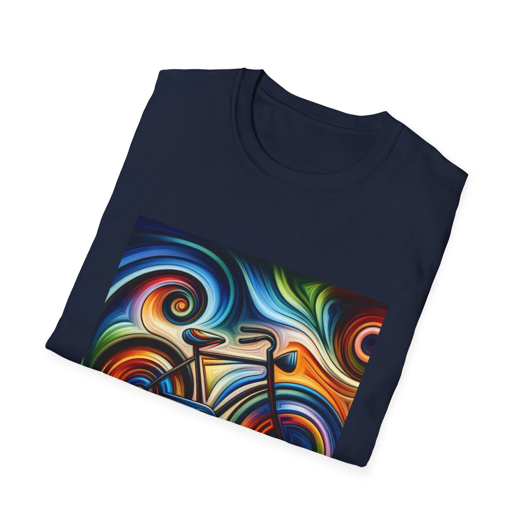 This lightweight cotton tee brings the energy of a sunlit ride to your everyday wardrobe. Vivid, swirling colors form a stylized bicycle graphic across the chest — bold, fluid, and motion-filled. The soft ring-spun cotton drapes comfortably and breathes through long rides or city commutes. A clean crew neckline and classic fit let the design stand out whether layered under a jacket or worn on its own. Ethically sourced materials and careful construction (no side seams, taped shoulders, ribbed collar) mean this shirt wears well and keeps its shape, wash after wash. Wear it when you want to celebrate movement, color, and the small freedom of two wheels under your feet.
