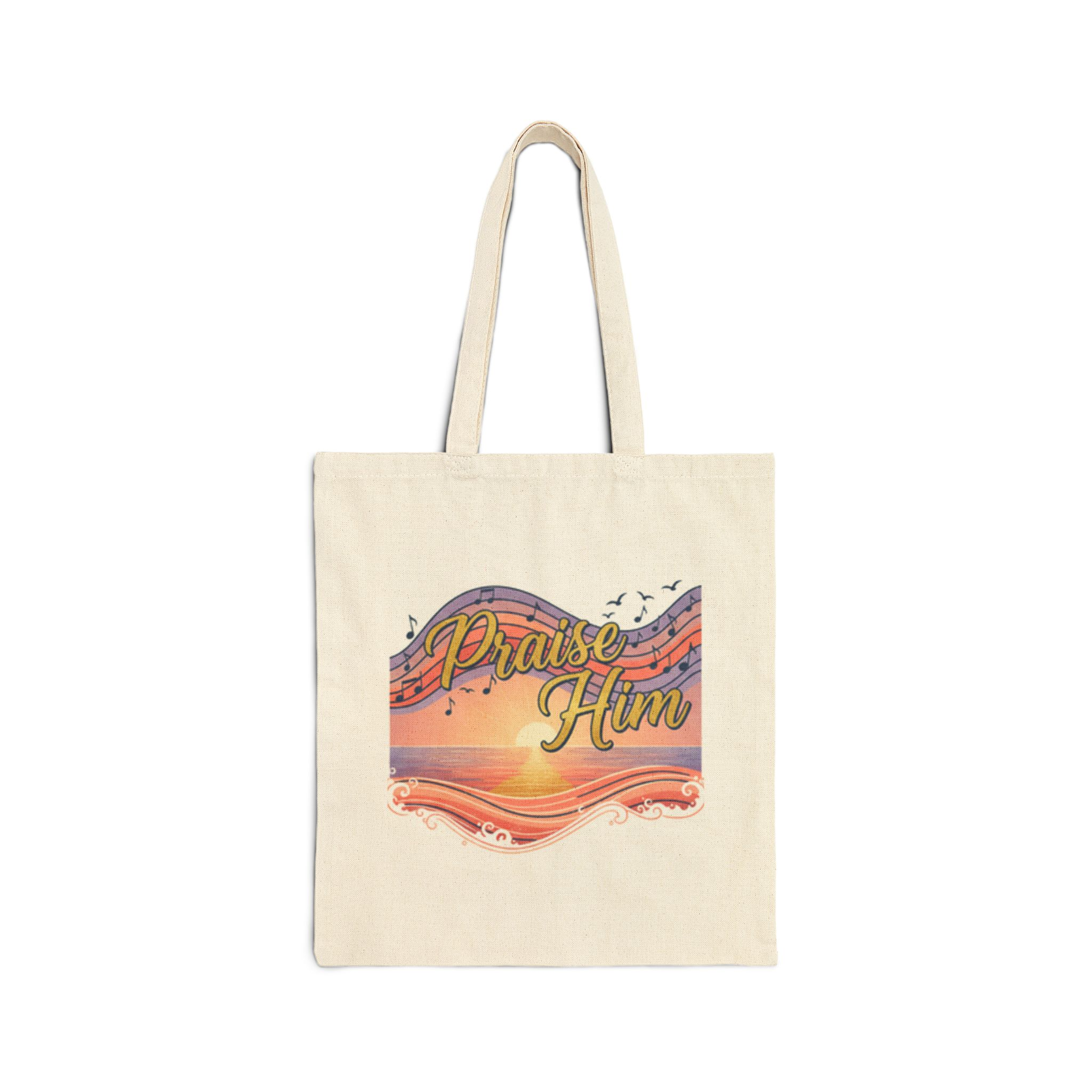 Praise Him Canvas Tote Bag — Christian Faith Sunset Beach Grocery Market Bag
