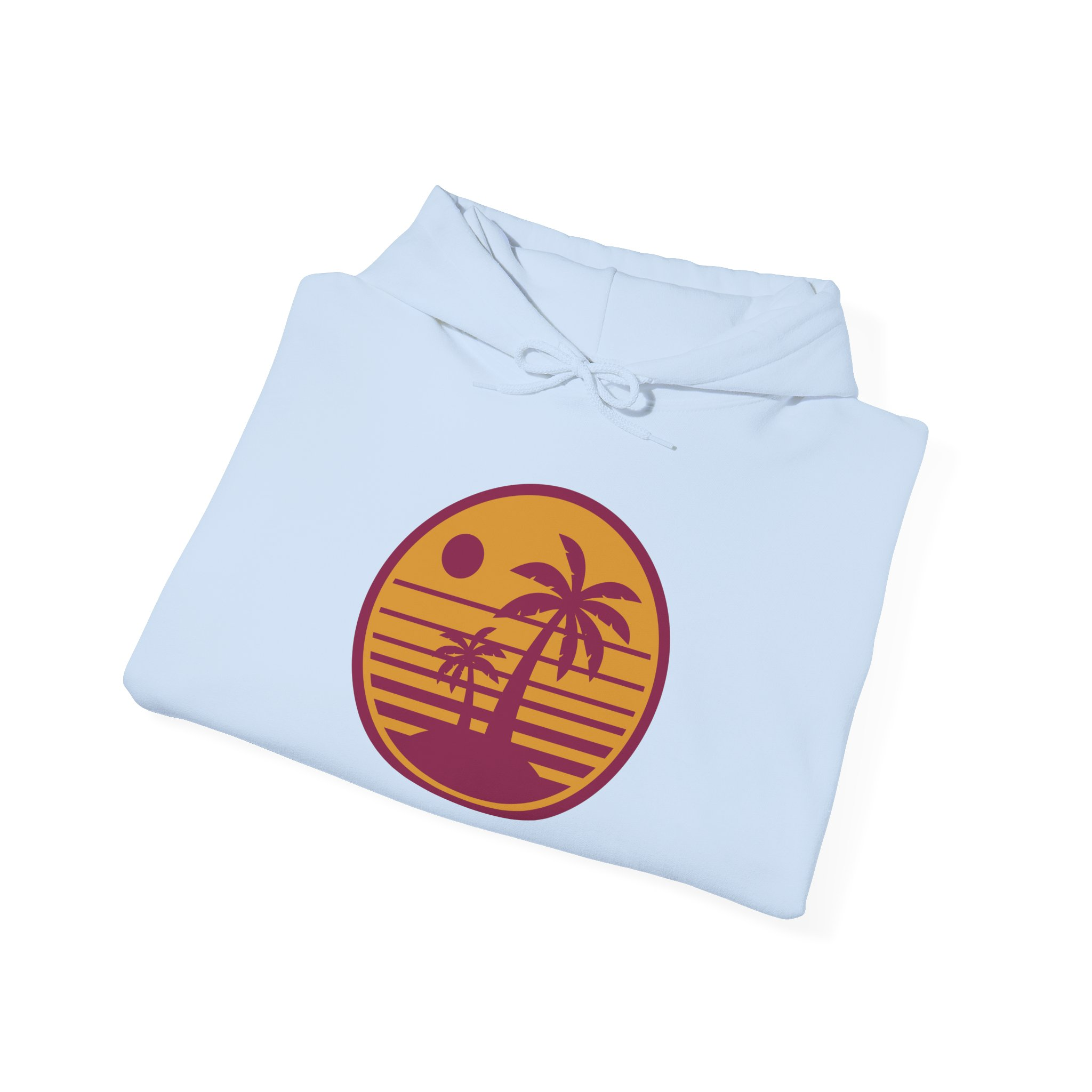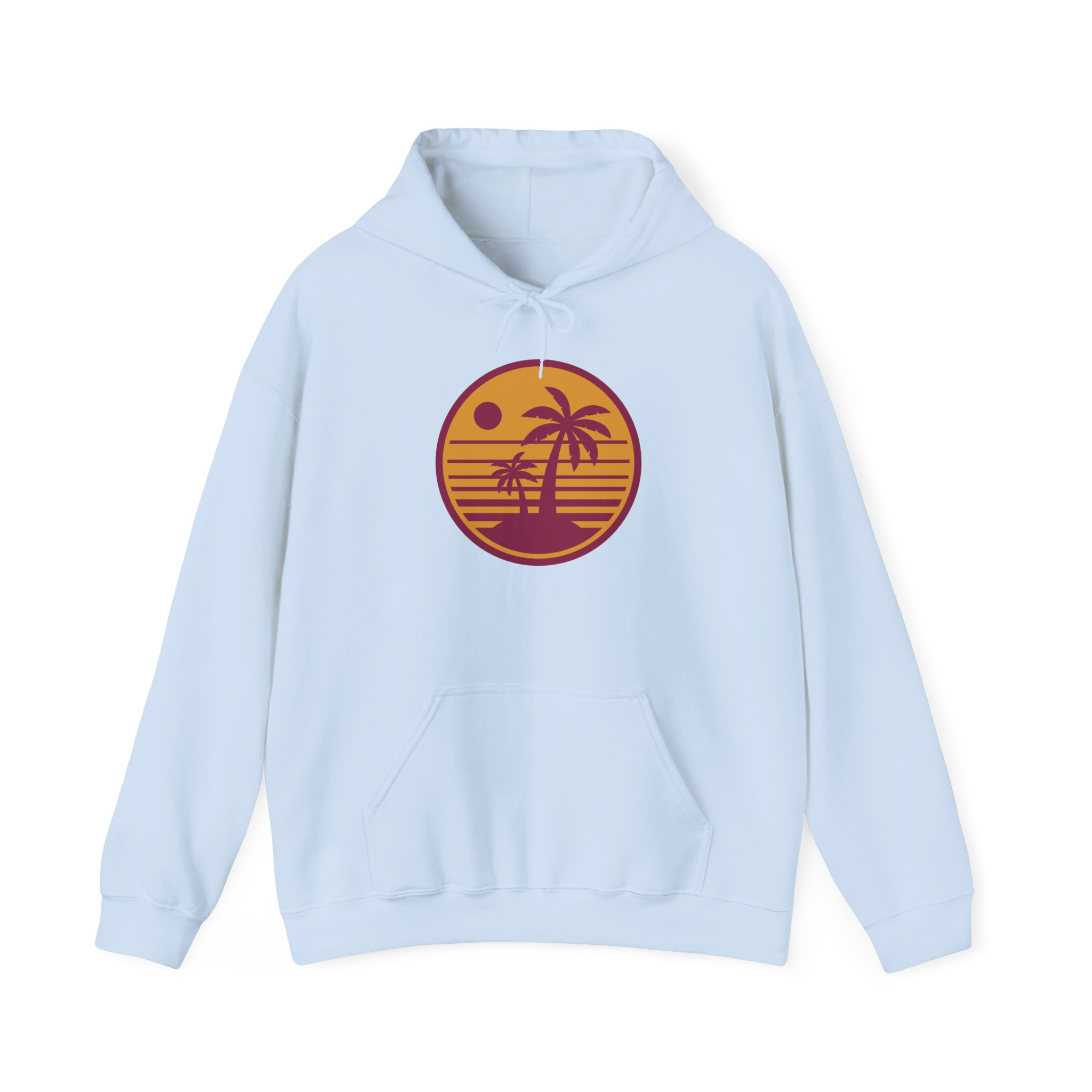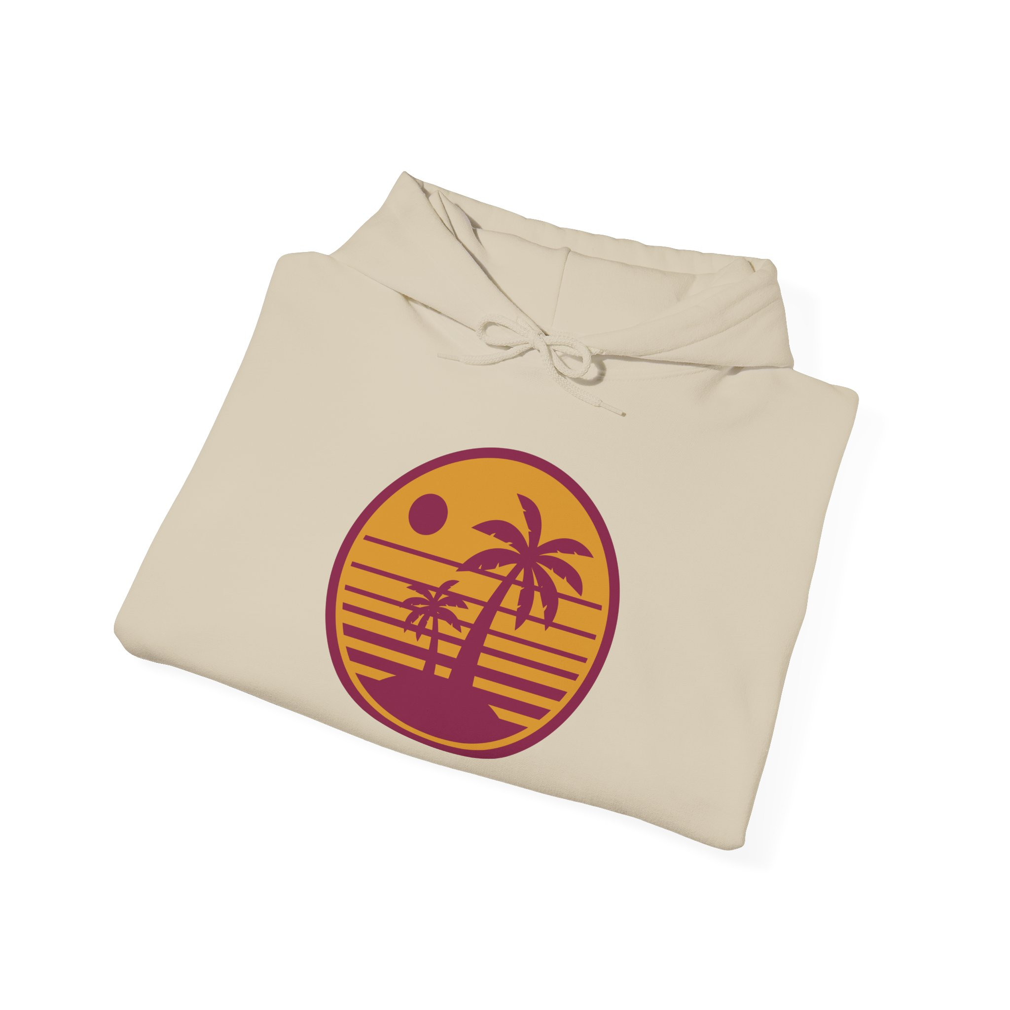 Be the first to review “Sunset Palm Hoodie — Retro Beach Circle Graphic”
