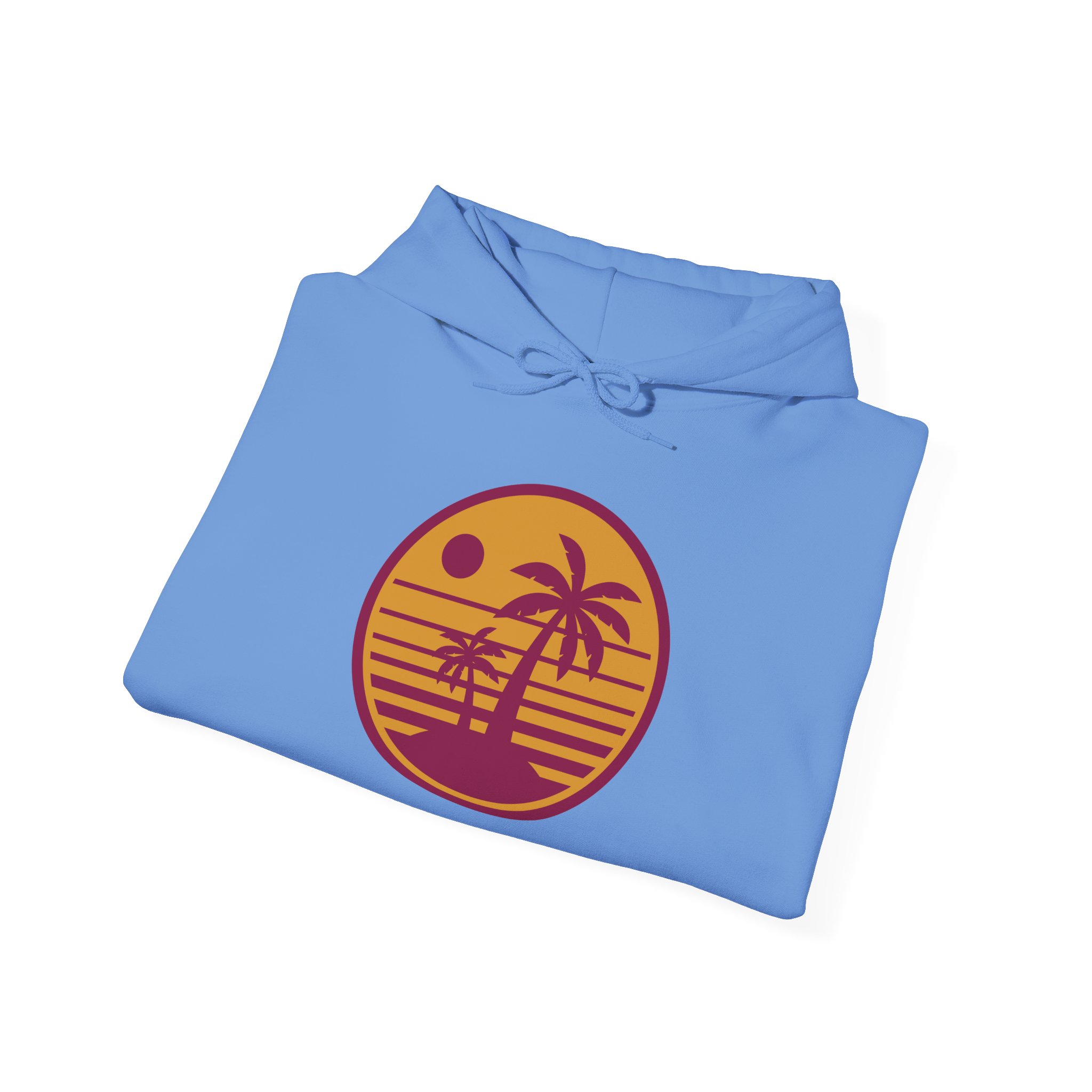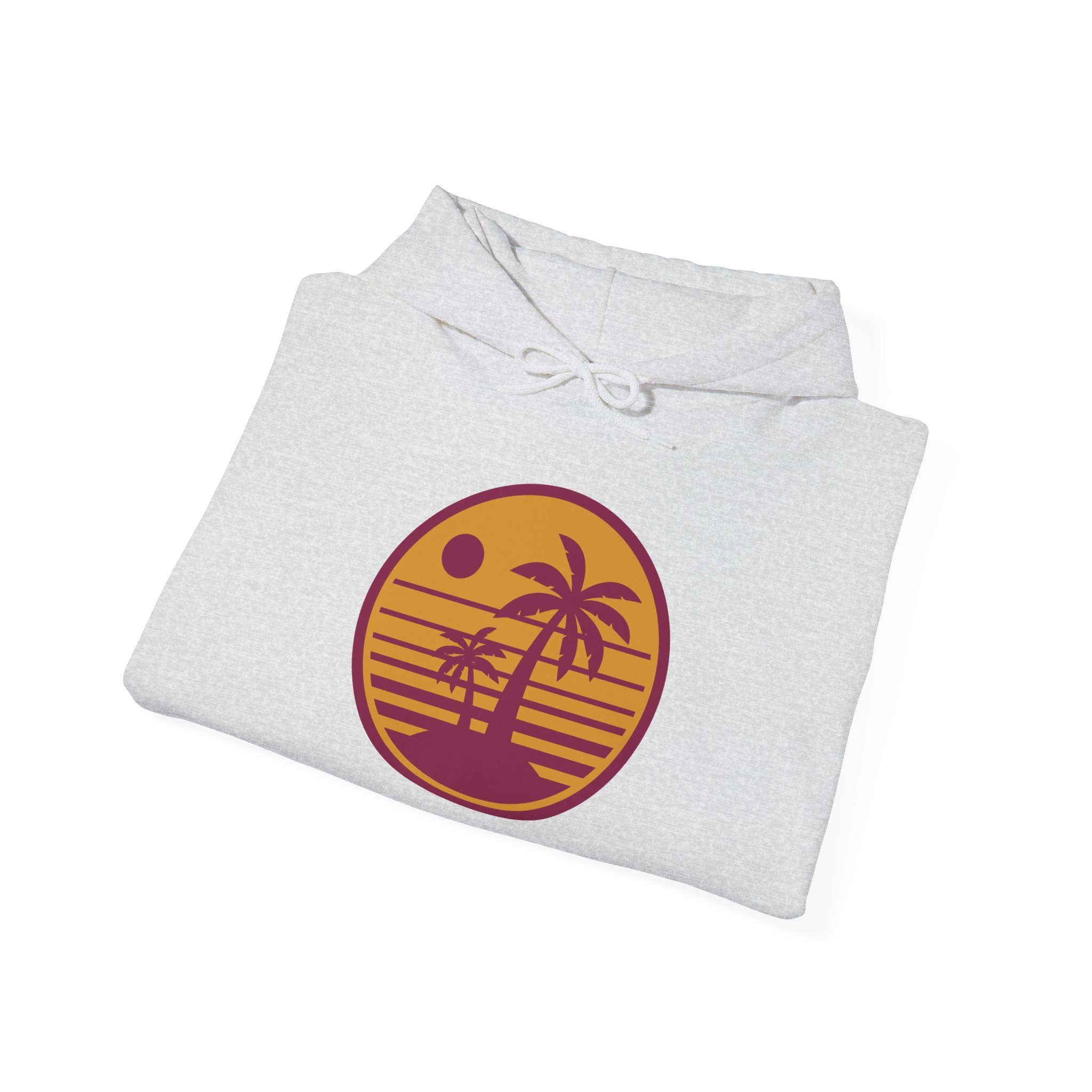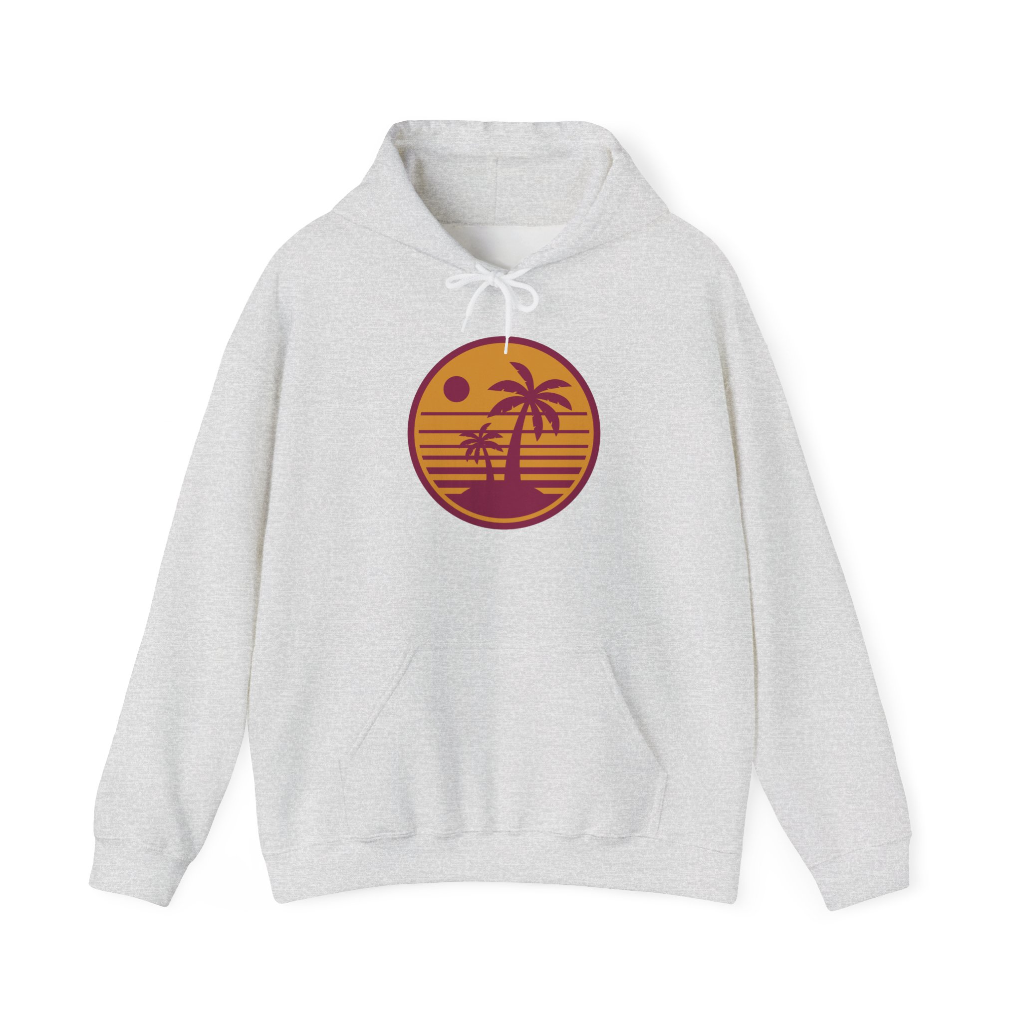 Be the first to review “Sunset Palm Hoodie — Retro Beach Circle Graphic”