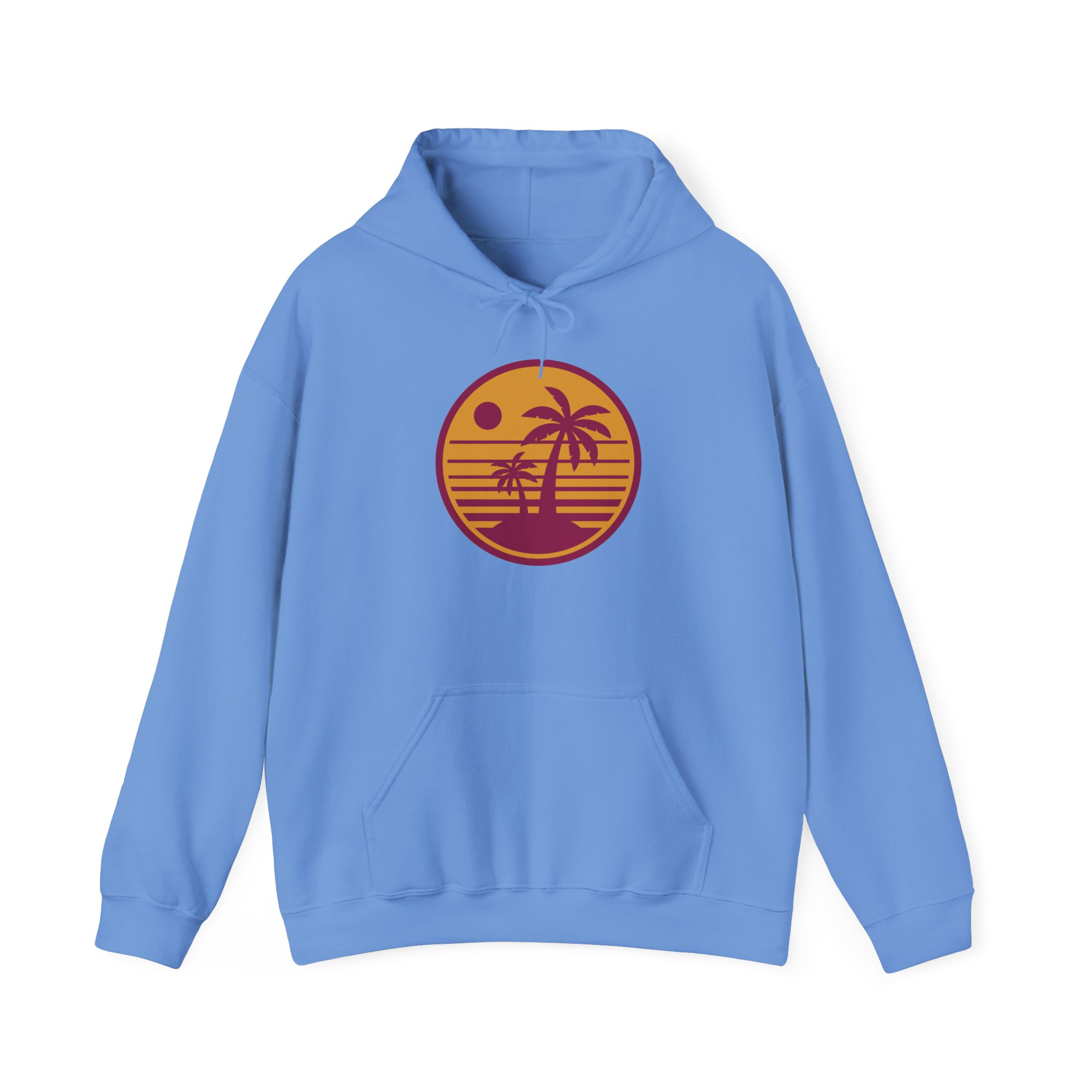 Wear the slow-sunset vibe. This cozy hoodie carries a warm, retro sunset-and-palm emblem that feels like a quiet evening walk along a familiar shore. The soft, medium-weight fabric holds heat without feeling bulky. Slip your hands into the roomy kangaroo pocket, cinch the color-matched hood, and let the mellow graphic do the talking — relaxed, nostalgic, and subtly bold. It sits comfortably over a tee or layered under a jacket for cooler nights, bringing beachside calm to city streets or cabin porches alike.